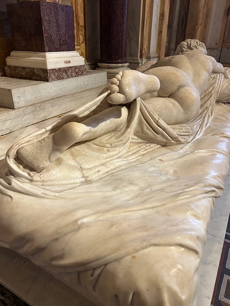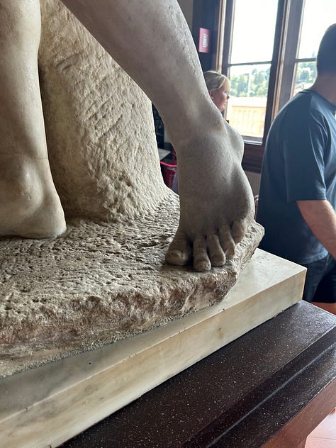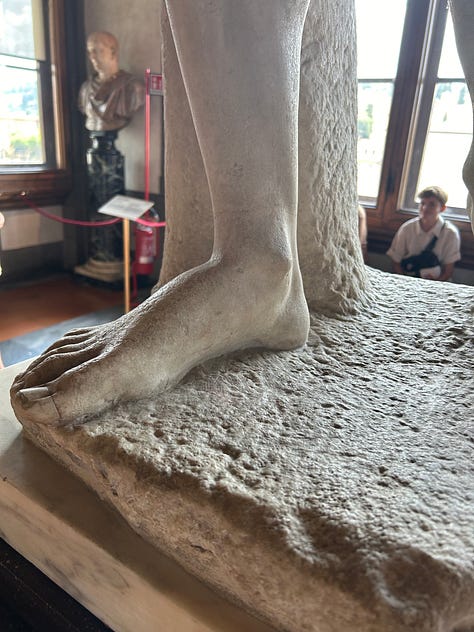 3. When I entered the first museum, I defensively decided against being overwhelmed. This refusal was more of an affirmation waiting to be manifested rather than a simple directive. I took in the sensory load around me, processed the sounds and materials I was walking through, zoomed out of my body and chose to recenter in a way that sorted my externals in a doable manner. The method to execute this recipe for enchantment was to pick a theme for my observations: I chose postures. From Boticelli to Gioto, Da Vinci to Raphael, Michelangelo to Bernini—my eyes only focused on singular, anatomic details…bodies. I became infected with the details of hands, feet, necks, ankles, limbs. Below is a carousel of what my eyes saw and my mind processed.